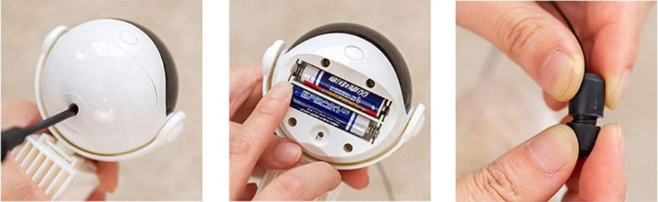 Se instruktionsbilder nedan för byte av batterier samt hur du sätter fast leksaken på lämpligt ställe.